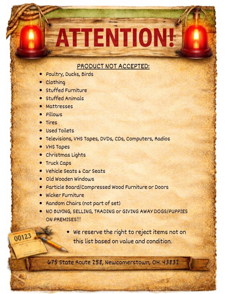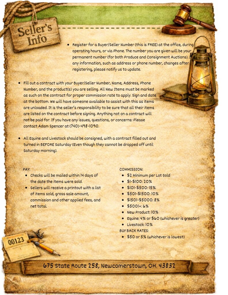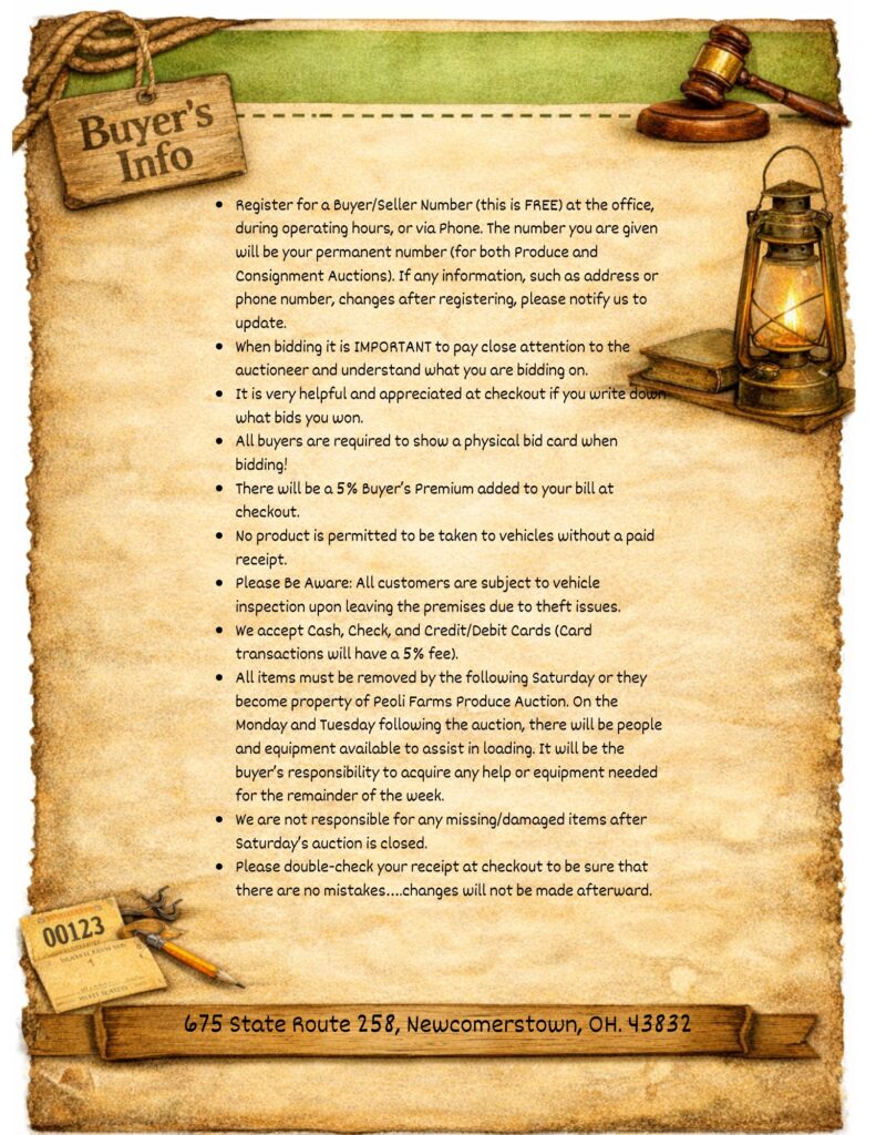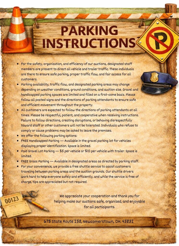 Our consignment auctions bring together a wide variety of useful items from our local community, and we want every buyer and seller to feel informed and prepared. The guides below provide important information about bidding, selling, parking, delivery options, and items we are unable to accept. Whether you’re attending for the first time or are a regular customer, these resources will help ensure a smooth, safe, and enjoyable auction experience for everyone.